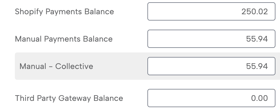 On the supplier’s side, Shopify automatically creates an order linked to the Shopify Collective sales channel, typically marked as a manual payment. When Bookkeep detects a manual payment, it checks whether the order is a Collective order. If it is, Bookkeep relabels it as “Manual – Collective” to make it easier to track and reconcile these transactions. This distinction helps clarify accounting since manual payments don’t normally flow through the Shopify Payments balance, even though the related funds often appear in a standard Shopify payout.