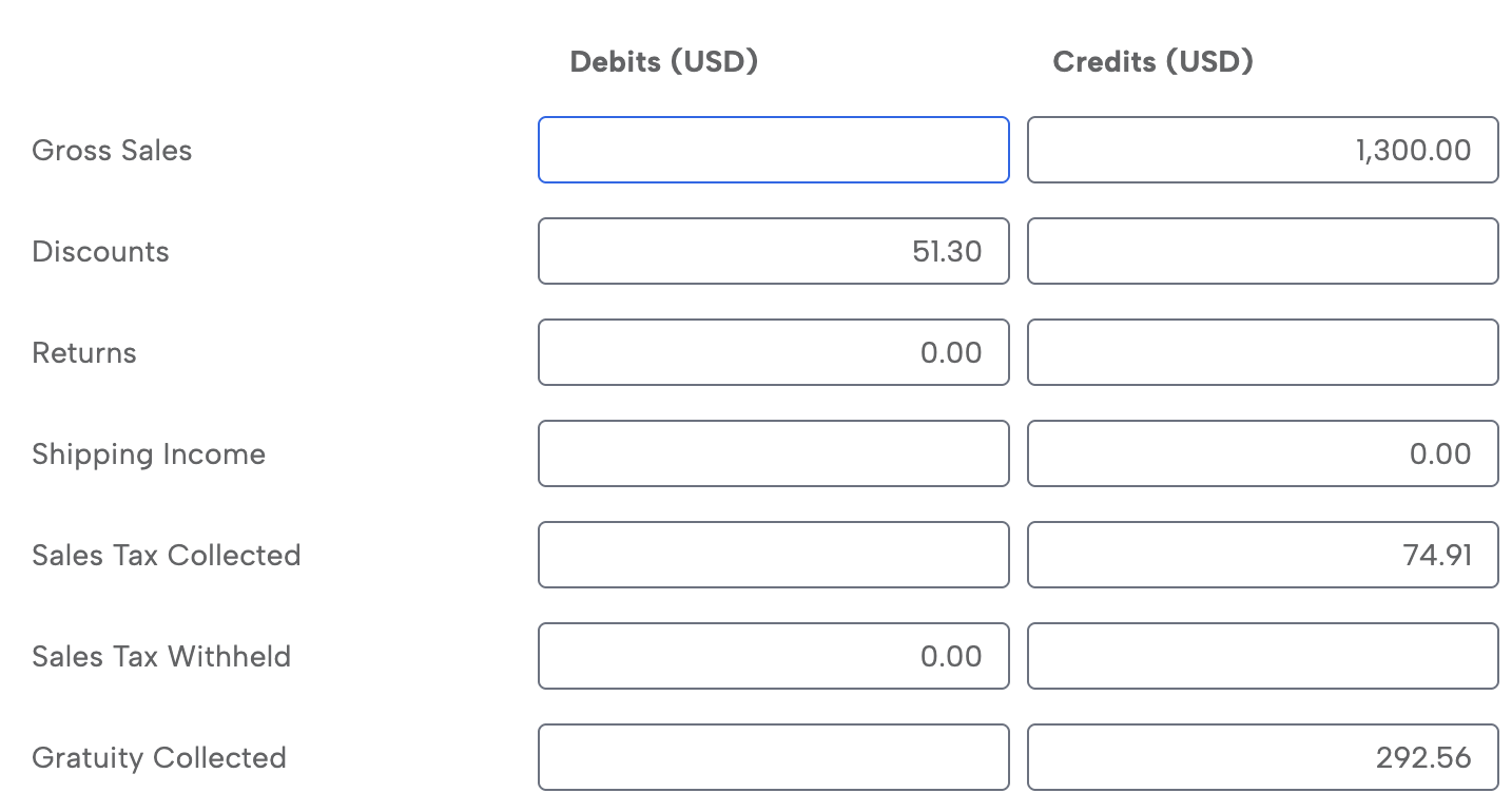 Bookkeep automatically captures Shopify tips and posts them to a dedicated Gratuity Collected line, ensuring that gratuities are clearly separated from sales revenue and accurately reflected in your accounting system for full transparency and clean financial reporting.