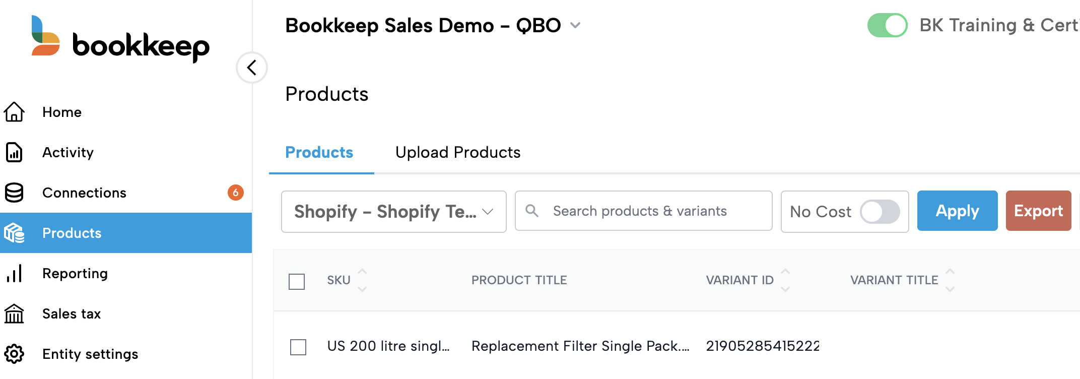 Bookkeep’s COGS feature now includes an export and import functionality, making it easier than ever to manage costs for your Shopify or Amazon product variants. To ensure accuracy, you should export all variants first and then use that file to input updates, so you have the correct format and all relevant data in one place.