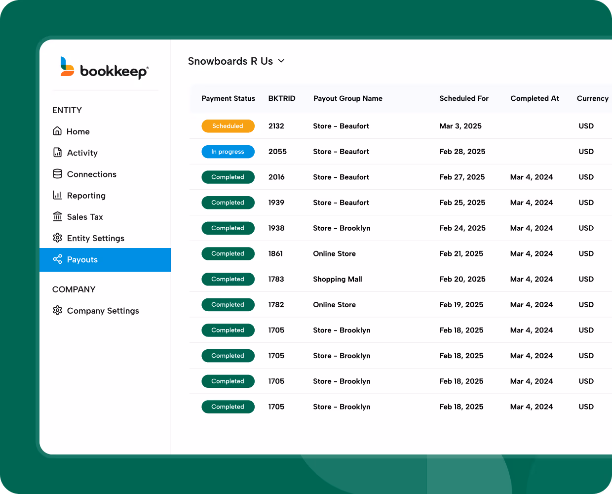“One of the things I really love about Bookkeep is its compliance area. I can find everything quickly and can see exactly how the entries are calculated and booked, since it’s linked to platforms like Square or Shopify. I have no worries if there is ever an audit… No one else does this. Bookkeep works so well, I forget I’m using it!”